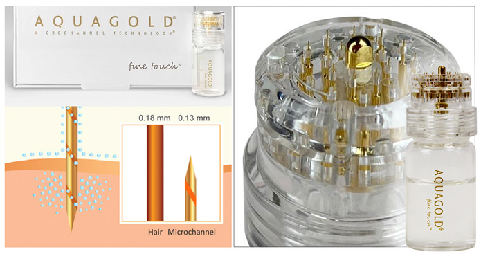 The Aquagold Fine Touch device is a revolutionary new method of microneedling, sometimes called Collagen Induction Therapy, available at Long Island Dermatology. The Aquagold device contains a number of extra fine, 24-karat gold needles, that are designed specifically to treat multiple areas of the face and body – leaving you with freshly restored, and rejuvenated skin, in under 30 minutes!